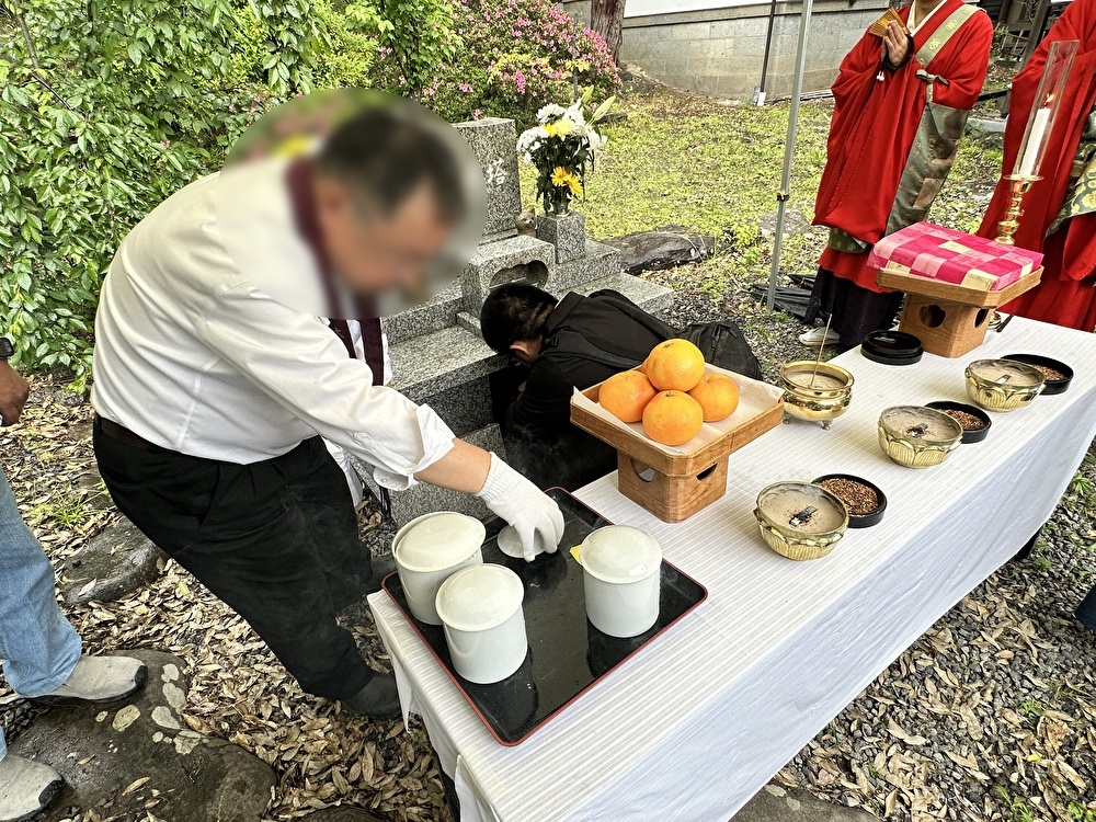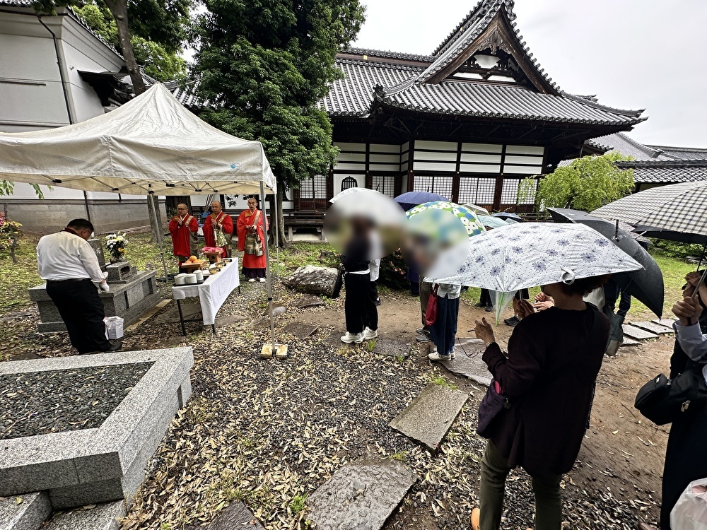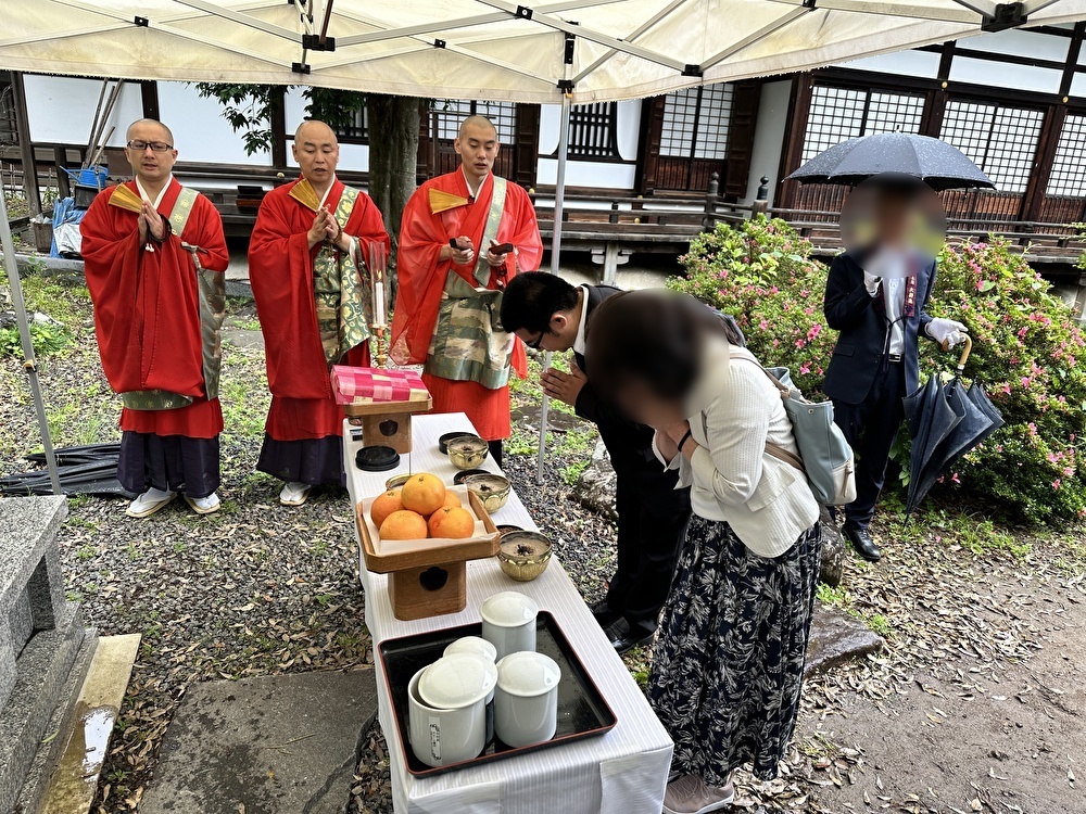 またご依頼いただいたお客様も納骨にご参加いただき、小雨降る中☔大勧進本堂でのご導師の読経、参列者はひとりひとりご焼香をしていただきました。